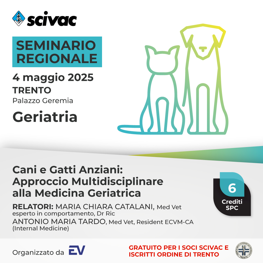 L’Ordine dei Medici Veterinari della provincia di Trento organizza, in collaborazione con SCIVAC (Società Italiana Veterinari Animali da Compagnia), una giornata di formazione dal titolo