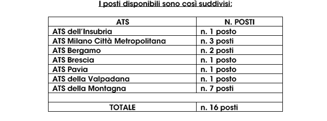 Si precisa che il Concorso pubblico è unico, gestito a livello regionale, e che ad ATS Brescia è disponibile n. 1 posto.