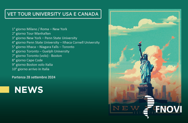 Prorogato al prossimo 16 giugno 2024 il termine concesso dall’Agenzia di viaggio per aderire al VET TOUR UNIVERSITY USA E CANADA proposto da FNOVI ai medici veterinari, ai loro accompagnatori, parenti ed amici.